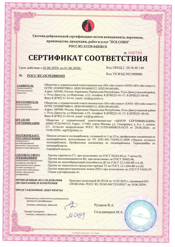 - Прочность и долговечность. Используем качественный сертифицированный монолитный поликарбонат (толщина от 3 мм). Материал устойчив к УФ‑излучению, не желтеет и не трескается со временем.